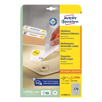 Usuwalne etykiety uniwersalne Avery Zweckform A4 30ark./op. 17,8 x 10 mm / białe